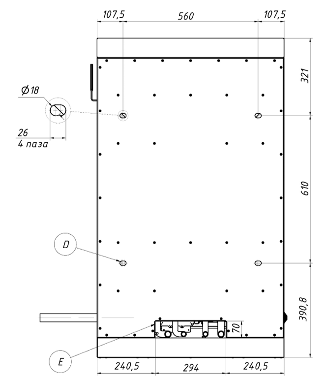 - Корпус установки выполнен из сендвич-панелей из нержавеющей стали и утеплителя между ними, толщиной 80 мм.